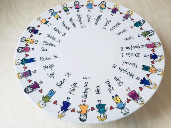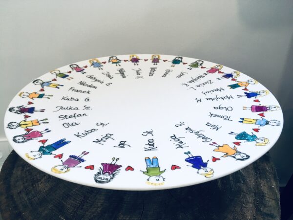 Malowany wysokiej jakosci farbami może zostać dowolnie spersonalizowany. Prosimy od przesłanie informacji zawierającej imiona, kolor włosów, rodzaj fryzury, piegi , okulary.