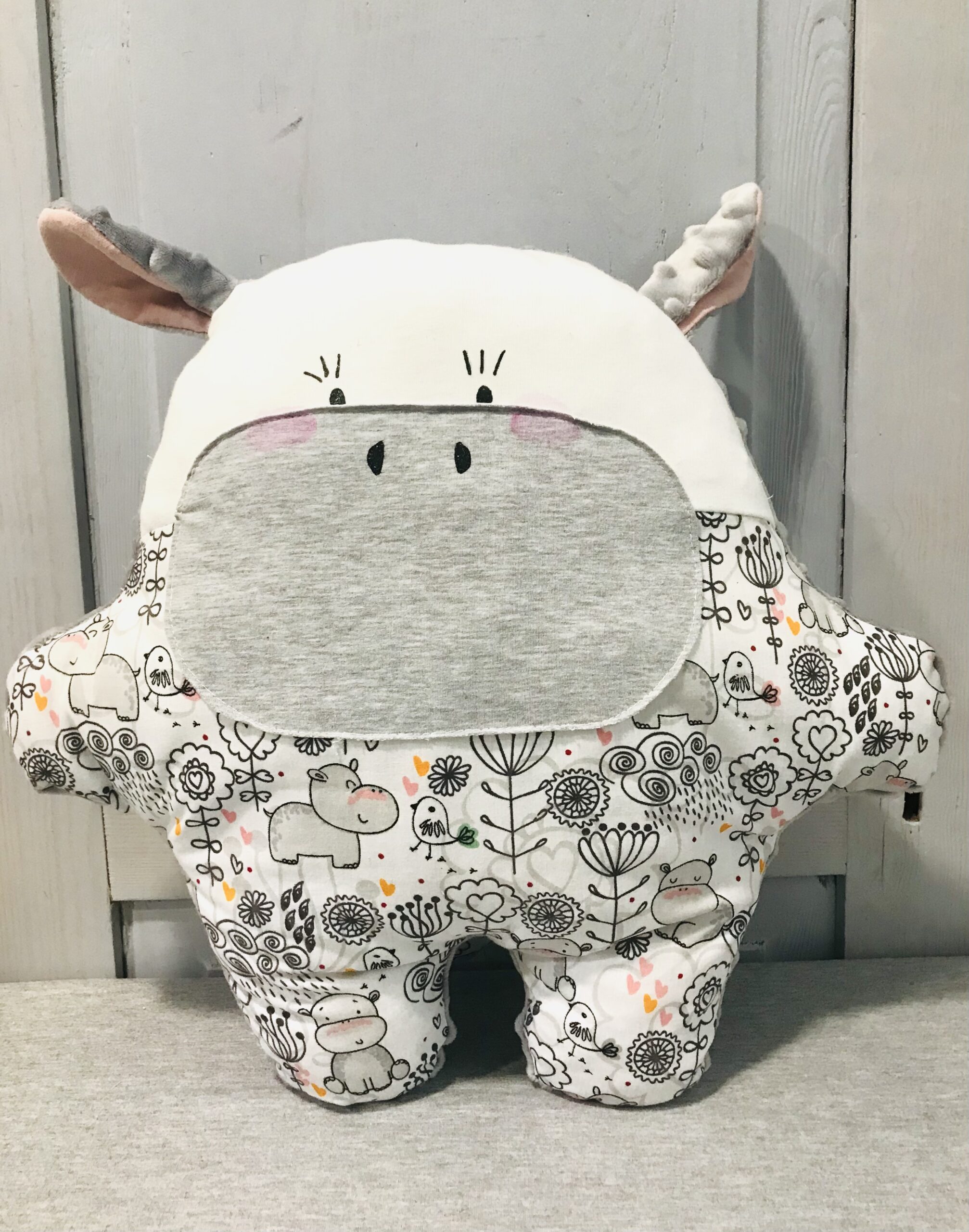 Kolorowa poduszka-zwierzątko uszyta z minki i bawełny. Idealna do dziecięcego pokoju, w podróży albo jako prezent. Z naszych poduszek możecie skompletować cały zwierzyniec. Autorski projekt teamu Manufaktury. Materiał: bawełna, minki, kulka silikonowa Pranie: w temp. 30 st.C WYMIARY: 32 cm x 27 cm